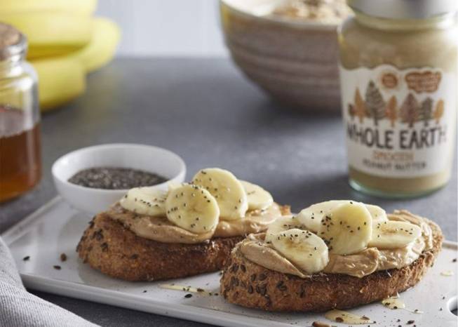 Toast your bread, and spread with a generous amount of Whole Earth Smooth Peanut Butter.